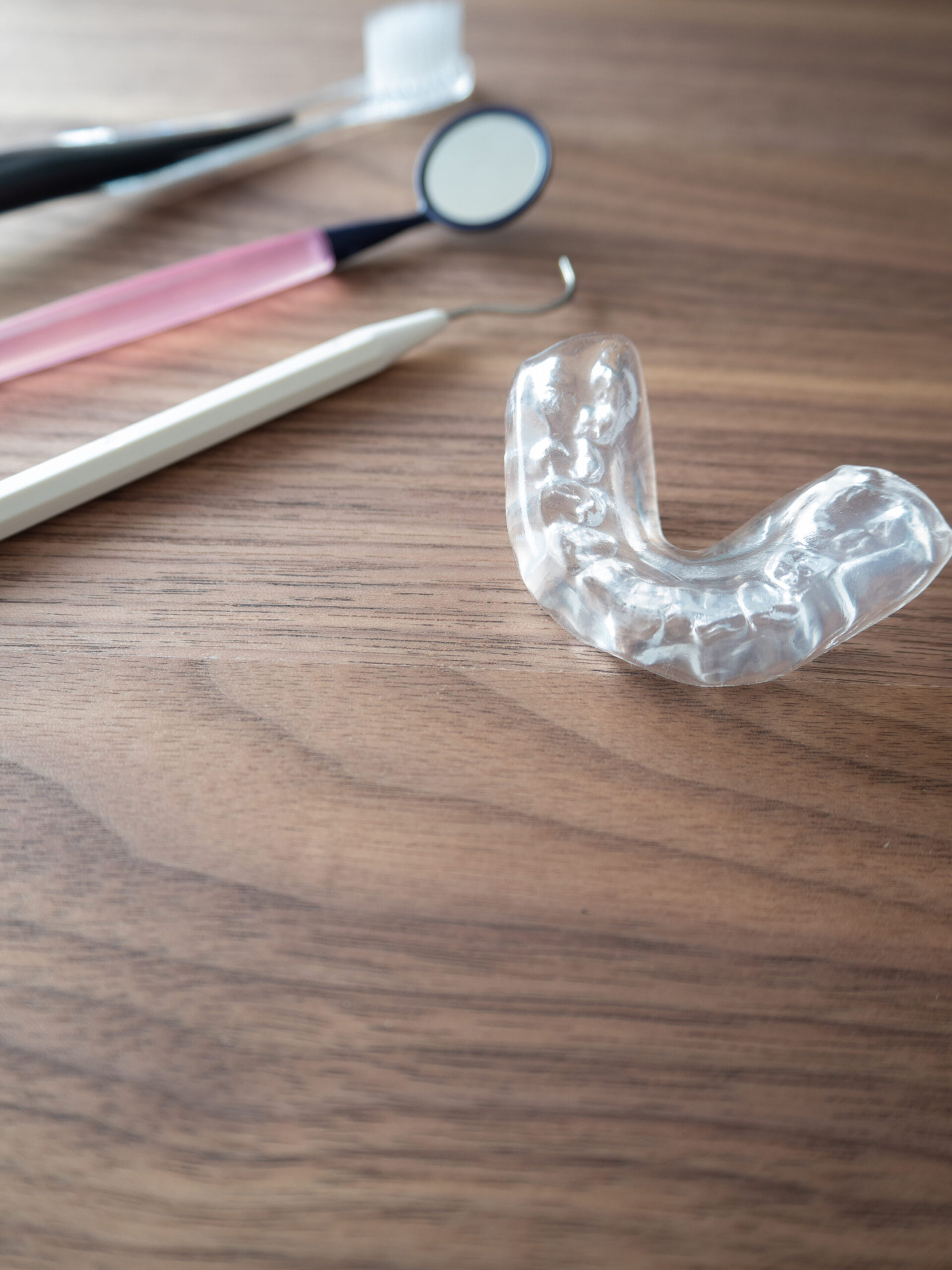 定期的な検診でマウスピースの状態を確認して、噛み合わせや破損の有無をチェックします。